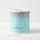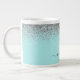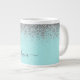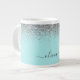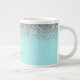 Aqua Blue Teal Silver Glitter Monogram Large Coffee Mug