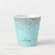 Aqua Blue - Teal and Silver Sparkle Glitter Script Monogram Name Latte Coffee Cup Mug. This makes the perfect sweet 16 birthday, wedding, bridal shower, anniversary, baby shower or bachelorette party gift for someone that loves glam luxury and chic styles.