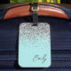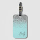 Aqua Blue Teal Silver Glitter Monogram Luggage Tag