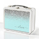 Aqua Blue Teal Silver Glitter Monogram Metal Lunch Box