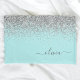 Aqua Blue - Teal and Silver Sparkle Glitter Script Monogram Name Pillow Case. This makes the perfect sweet 16 birthday, wedding, bridal shower, anniversary, baby shower or bachelorette party gift for someone that loves glam luxury and chic styles.