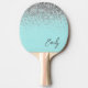 Aqua Blue Teal Silver Glitter Monogram Ping Pong Paddle