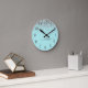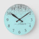 Aqua Blue Teal Silver Glitter Monogram Round Clock