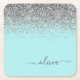 Aqua Blue Teal Silver Glitter Monogram Square Paper Coaster