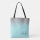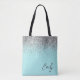 Aqua Blue Teal Silver Glitter Monogram Tote Bag