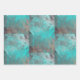 Aqua Blue Turquoise N Grey Distressed Abstract Wrapping Paper Sheet