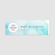 This name tag has a aqua blue watercolor background and can be personalised with your name. The copy can be edited, and you can change the colour and font. Add your logo to the front, name and title.