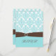 Aqua Blue, White Damask with Brown FAUX Ribbon RSVP Card