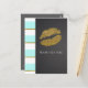 Aqua Blue & White Faux Gold Shimmer Lips Event Postcard. Matching items in my store. Add any text you want.