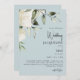 Aqua blue White Hydrangea Wedding Invitation. Modern Design and font. Elegant.