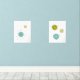 Add that pop of fun to your walls with this set of coordinating mid century modern prints. The first design features aqua blue and yellow Franciscan starbursts and the second design features aqua blue, yellow, and avocado green atomic elements.