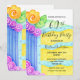 Aqua Blue Yellow Cake Floral 60th Birthday Party Invitation