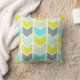 Aqua Blue Yellow Grey Geometric Chevron Pattern Cushion