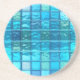 Enhance your table setting with our Aqua Blues Translucent Tiled-Look Coasters. These coasters, with a diameter of 4.25" and a thickness of 0.25", are crafted from sandstone and feature a cork pad backing to protect your tables and surfaces from scratches and marks.