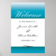 Welcome to our Wedding sign poster has an elegant look with aqua blend top and bottom border with editable text and ornamental flourish. Greet your wedding guests with a custom sign, may be framed or mounted to a board or easel.