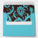This linen A7 turquoise blue and brown floral damask envelope has its own white and brown address label on the front. It matches the wedding invitation shown below. You can "clear" any of the design templates to reveal a white outer envelope, or an inner striped design instead of the damask. If there are any other matching items you require, please email your request to niteowlstudio@gmail.com.