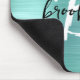 This elegant personalized mouse pad features a monogram and first name in modern black and white script on an aqua brushed metal background.