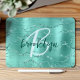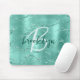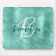 Aqua Brushed Metal Glitter Script Monogram Mouse Pad