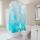 Custom shower curtain featuring pretty bokeh on aqua teal.