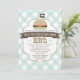 Summer is a great time to host a bbq baby shower. These couples bbq baby shower invitations with an aqua blue light teal pinic blanket and gingham table cloth pattern, banner and a burger and toothpick flag design are cute and fun. Artwork © Chrissy H. Studios, LLC. All Rights Reserved.