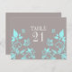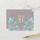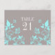 Sweet and dainty Butterfly Floral Table Number Postcard with a muted dusty grey background and turquoise butterflies and floral vine embellishments. This elegant wedding table card is the perfect choice for a modern and chic wedding. Easy to customise, simply add the appropriate table number(s) in the text field provided. Click on the "Customise It" button to find additional personalisation options.