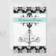 Aqua Chandelier rehearsal dinner cards with a white chandelier and damask print on a black background and aqua trim. They are easy to customise with all of your rehearsal dinner specifics and we also have the matching wedding invitations, bridal and couple's shower invitations, RSVP cards, thank you notes, information sheets, stickers, postage, and much more!
