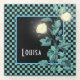 Dramatic and elegant design features aqua and black checkboard background, luminescent white rose floral bouquet and customisable name.