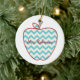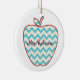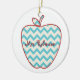 Aqua Chevron Apple Teacher Ceramic Ornament