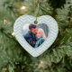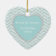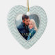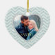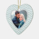 Here's a sparkly Holiday ornament that features your own photo within a heart shaped frame. The frame is placed on an icy aqua blue chevron. The back of the ornament has the same background and frame, with your custom text in white on a matching solid background. Bright, elegant, and personalised for you! *Please note - the image is printed and contains no actual glitter.