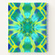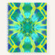 Journal in a tie dye pattern in shades of cobalt blue, green and yellow with an aqua / seaglass green background