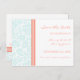 Wedding save the date announcement postcards in elegant and contemporary bright pastel light turquoise sky blue, peach orange pink, and white classic and vintage floral damask pattern, stylish and fully customisable with your wedding details. Also available in many other products for the wedding party.