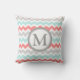 Aqua Coral Grey Chevron Monogram Decorative Pillow