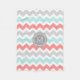Aqua Coral Grey Chevron Pattern Monogram Blanket