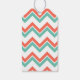 Aqua Coral Red Chevron Pattern Wedding Gift Tag