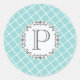 Aqua Cross Hatch Vintage Wedding Monogram Sticker