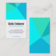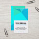 A modern minimalist design featuring a graphic geometric design on the top half consisting of five coloured triangles in different shades of aqua, blue and mint green. Underneath, there is space for your details in a modern sans serif font in bright blue and black on a white background. On the reverse, the geometric design is repeated.