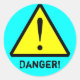 This design, in yellow, black and aqua, features an exclamation point inside of a triangle, an international symbol for warnings and hazards. The text is customisable and can be changed from "Danger" to your own personal warning message.