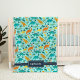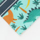 Personalise this cute dinosaur themed fleece blanket with your child’s name in white lettering for a cool custom touch! Created especially for dino-loving kids, this colourful design features orange, yellow, and mint green dinosaur illustrations on a vibrant aqua background.