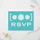 This D20 Dice Gamer Wedding Response Postcard in turquoise is perfect for the nerdy couple who fell in love over a shared interest in role playing games and are planning a similarly themed wedding. This offbeat design features a simple and minimalist trio of twenty-sided die. Easy to customise, simply add the details of your wedding in the text fields provided. Click "Customise It" to find more personalisation options.