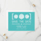 This D20 Dice Gamer Save the Date Announcement in turquoise is perfect for the nerdy couple who fell in love over a shared interest in role playing games and would like to announce their wedding displaying this part of their personalities. This offbeat design features a simple and minimalist trio of twenty-sided die. Easy to customise, simply add your wedding details in the text fields provided. Click "Customise It" to find more personalisation options.