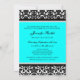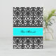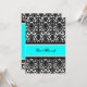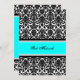 Custom Bat Mitzvah party invitations in elegant bright aqua turquoise blue, black and white classic floral damask pattern. Add your name and party details for a unique and stylish Bat Mitzvah party invitation.