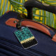 I was happy with the acrylic tag but it came with a thin leather strap to attach the tag to luggage (like a cat collar). I replaced the strap with a metal ring off of a key ring as the leather strap would come undone or break easily as luggage is sometimes handled without much care by airlines. Printing is great. Colours and positioning of the design I put on the tag were perfect. Very pleased.