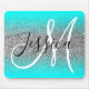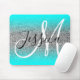 Aqua Edge Ombre Silver Glitter Monogram Mouse Pad