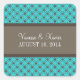 Trendy and chic Fancy Lattice Wedding Stickers featuring a stylish circle and diamond studded pattern over a vibrant turquoise background with a broad two-toned brown border. These elegant wedding stickers are perfect for a modern wedding. Easy to customise, simply add your wedding details in the text fields provided. Click "Customise It" to find more personalisation options.