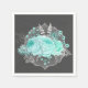 Beautiful and dramatic - aqua and silver tint watercolor floral bouquet with embellishments and delicate frosted frame on chalkboard black background