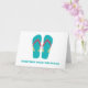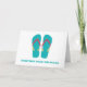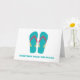 A pair of colourful "Aqua Flip Flops" with yellow and red straps. Text: "Greetings from the Beach" in a cool font. Easily customise the text with your own personalised message. Font colour: #11B3B8