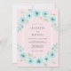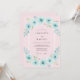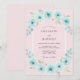 A delicate archway of aqua blossoms and soft green foliage graces this romantic design. The gentle watercolor effect creates a dreamy, ethereal atmosphere perfect for a whimsical gathering. Soft pink hues provide a subtle, complementary backdrop to the vibrant blooms.