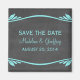Elegant and trendy Flourish Chalkboard Save the Date Magnet featuring a chalkboard look background and a fancy swirl and leaf art deco border in turquoise. Easy to customise, simply add your wedding details. Click "Customise It" to find more personalisation options.