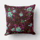 Aqua & Fushia Roses Throw Pillow