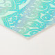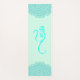 Pretty light mint coloured yoga mat, with graphics of an aqua mandala on both ends. An aqua symbol of Ganesha, decorates the middle. Same design is featured on both the front and backside of the mat.